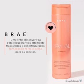 O Shampoo Braé Revival faz uma limpeza suave e prepara o cabelo para receber o tratamento condicionante. Seus compostos vitamínicos ajudam a resgatar gradativamente as camadas sensibilizadas dos fios. Assim, esse shampoo Braé deixa o cabelo reparado, mais brilhante e revitalizado.