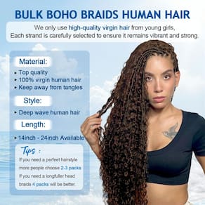 -?Estilo versátil?: Abrace sua criatividade e expresse seu estilo único com nosso cabelo trançado humano. Cabelo humano para tranças boho sem nós, tranças boêmias de crochê, boho Locs e tranças em caixa de deusa com possibilidades infinitas e looks deslumbrantes.