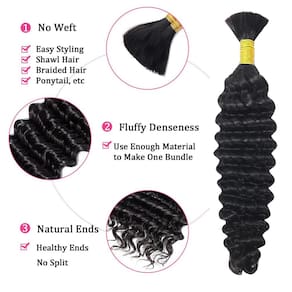 - Material do cabelo humano trançado: cabelo humano ondulado profundo, cabelo humano tranças boho grau 12A, 100% cabelo humano virgem brasileiro não processado, cortado diretamente de meninas saudáveis, natural e limpo, cheio e grosso, saltitante e brilhante, saudável e confortável, sinta-se como seu próprio cabelo