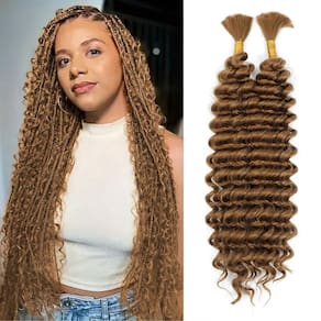 O cabelo humano trançado é uma das extensões de cabelo mais populares, pode ser utilizado para muitos estilos de cabelo diferentes. O cabelo trançado 100% humano é muito caro, e o cabelo trançado sintético normal é fácil de emaranhar. Para resolver esse problema, misturamos alguns cabelos humanos dentro dos feixes sintéticos de ondas profundas para melhorar a qualidade. Depois de misturar o cabelo humano em massa para trançar, a textura e a sensação de toque melhoraram, e o cabelo humano encaracolado para tranças boho não é fácil de embaraçar e soltar, você pode usar o cabelo boho para trançar como todos os tipos de tranças boho e outros estilos de cabelo. Todos os cabelos cacheados trançados precisam ser mantidos, durarão mais dias com os devidos cuidados. Como cuidar do cabelo humano em massa para trançar: 1. Penteie suavemente o cabelo humano boho trançado com os dedos ou um pente de dentes largos da ponta ao topo. 2. Lave o cabelo a granel para tranças boho em água morna com o xampu e condicionador de cabelo. 3. Limpe o cabelo bukl suavemente com uma toalha e deixe secar naturalmente para manter a forma e a textura. O cabelo boêmio para trançar o cabelo humano trará um visual bonito e charmoso para você. Nosso cabelo trançado de ondas profundas é fácil de fazer tranças boêmio, se você prefere tranças boêmias, tranças boho sem nós, tranças box ou penteados cacheados com ondas de água, este cabelo volumoso para tranças boho atenderá às suas necessidades. - Material de alta qualidade: este cabelo trançado de ondas profundas é feito de cabelo sintético premium resistente ao calor misturado com alguns cabelos trançados humanos, suave e macio, a sensação e a textura são semelhantes ao cabelo humano trançado, mas o preço é mais barato. Ele criará um estilo de cabelo mais natural e charmoso para você - Comprimento e peso: o cabelo boho para trançar tem 45 cm, comprimento adequado para a maioria das pessoas. Cada pacote inclui 2 peças de tranças boho, o peso total é de cerca de 120 g (2 peças/pacote, 60 g/peça). Se você gosta de tranças de cabeça inteira, recomendamos que você compre 2-3 pacotes de cabelo trançado boho - Fácil de trançar e de longa duração: este cabelo trançado molhado e ondulado pode ser facilmente trançado em seu cabelo, durará vários meses após ser trançado devido ao material de alta qualidade, sem emaranhados e sem queda. O cabelo boêmio para trançar o cabelo humano é fácil de manter e não irrita a pele - Vários estilos de cabelo: Cabelo encaracolado para tranças boho sem trama, é adequado para vários estilos de trança. O cabelo micro trançado pode ser utilizado para tranças boho sem nós, tranças de caixa, tranças boêmias, tranças de deusa, micro tranças, etc. O cabelo humano a granel para tranças boho também pode ser utilizado para adicionar volume e comprimento ao seu cabelo natural - Várias ocasiões de uso: nosso cabelo trançado boho trará belos estilos de cabelo para você, elevará sua aparência e confiança. O cabelo humano a granel para trança é adequado para o uso diário, casamento, encontros, férias, festas, presentes e assim por diante. Se você tiver alguma dúvida e problema depois de receber os itens, sinta-se à vontade para entrar em contato conosco