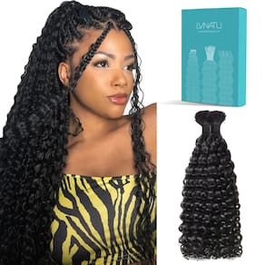 Lvnatu Cabelo humano encaracolado Boho para trançar tranças boêmias sem nós sem trama 2 mechas 100 g 55 cm preto natural