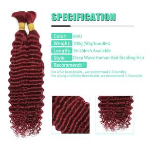 Cabelo humano trançado 2 feixes/pacote 100 g Borgonha 99J cabelo humano encaracolado ondulado profundo para trançar sem trama 10A cabelo humano virgem brasileiro trançado para extensões boho tranças - ?Cabelo humano trançado para tranças Boho Dica?Um pacote não é suficiente para criar um penteado, mais pessoas optam por pedir 100 g mais 100 g para poder fazer um penteado mais perfeito - Comprimento e cor do cabelo humano trançado: cabelo humano ondulado profundo para trançar com uma ampla variedade de cores (#1B/#2/#4/#27/#30/#350/#4-27/#99J/#613), comprimentos (40.6-71.1 cm) disponíveis, você pode escolher a combinação perfeita para suas preferências e alcançar o visual desejado - ?Material de cabelo humano trançado? Usamos 100% cabelo humano virgem brasileiro 10A não processado, a textura do cabelo humano boho tranças é incrivelmente macia, suave e fácil de manusear, parecendo muito com cabelo natural - ?Cabelo boho para trançar mais amplamente utilizado? O cabelo encaracolado humano trançado oferece grande versatilidade, não apenas adequado para tranças boêmias, tranças sem nó, tranças boho e tranças de caixa, mas também permite um estilo fácil para diferentes visuais modernos - ?Cabelo humano a granel para trançar longa duração?Devido à sua composição de cabelo real de alta qualidade, o cabelo humano trançado molhado e ondulado é excepcionalmente durável, mantendo seu apelo estético por longos períodos. Isso garante que você possa usar esses penteados com confiança