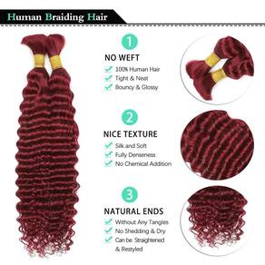 Cabelo humano trançado 2 mechas/pacote 100 g vinho 99J cabelo encaracolado ondulado profundo para trançar sem trama 10A virgem brasileiro para extensões de tranças Boho (#99J, 24 polegadas)