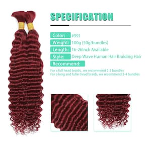 Cabelo humano trançado 2 feixes/pacote 100 g Borgonha 99J cabelo humano encaracolado ondulado a granel para trançar sem trama 10A extensões de tranças boho virgem brasileiro (#99J, 66 cm) - ?Cabelo humano trançado para tranças Boho Dica?Um feixe de cabelo trançado não é suficiente para criar um penteado, mais pessoas optam por pedir 100 g mais 100 g para poder fazer um penteado mais perfeito - Comprimento e cor do cabelo humano trançado: cabelo humano ondulado profundo para trançar com uma ampla variedade de cores (#1B/#2/#4/#27/#30/#350/#4-27/#99J/#613), comprimentos (40.6-71.1 cm) disponíveis, você pode escolher a combinação perfeita para suas preferências e alcançar o visual desejado - ?Material de cabelo humano trançado? Usamos 100% cabelo humano virgem brasileiro 10A não processado, cabelo trançado humano molhado e ondulado. A textura do cabelo humano em massa para trançar é incrivelmente macia, suave e fácil de manusear, parecendo muito com cabelo natural - ?Cabelo boho para trançar mais amplamente utilizado? O cabelo encaracolado humano trançado oferece grande versatilidade, não apenas adequado para tranças boêmias, tranças sem nó, tranças boho e tranças de caixa, mas também permite um estilo fácil para diferentes visuais modernos - ?Cabelo humano Boho Trança Longa Duração?Devido à sua composição de cabelo real de alta qualidade, a trança de cabelo humano é excepcionalmente durável, mantendo seu apelo estético por longos períodos. Isso garante que você possa usar esses penteados com confiança