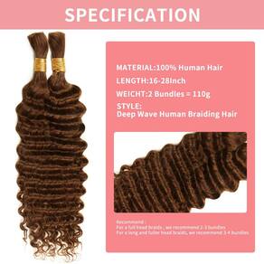 Transforme seu visual sem esforço com nosso cabelo humano de onda profunda para trançar, projetado para realçar o melhor do seu estilo. Feito de 100% cabelo humano premium, este produto oferece suavidade incomparável, brilho natural e durabilidade duradoura. Perfeito para vários estilos de trança, de tranças modernas de deusa a tranças clássicas, nossa textura ondulada profunda adiciona volume e dimensão a qualquer penteado. ? Cabelo humano 100% autêntico – Aproveite a sensação natural, textura realista e versatilidade de estilo que apenas cabelo humano real pode oferecer. Resistente ao calor para enrolar, alisar ou tingir para combinar com seu visual exclusivo. ? Textura ondulada profunda – Adiciona ondas sem esforço com uma aparência luxuosa e volumosa que combina perfeitamente com o seu cabelo natural para um acabamento impecável. ? Fácil de gerenciar – Projetado com um alinhamento suave da cutícula, nosso cabelo resiste ao emaranhamento e permanece fácil de manusear. A textura natural facilita o estilo, mesmo para iniciantes. ? Leve e confortável – Projetado para uso durante todo o dia, este cabelo não vai pesar, garantindo o máximo de conforto e confiança. ? Manutenção fácil – Mantém sua forma e brilho com o mínimo de cuidado, para que você possa desfrutar de penteados deslumbrantes sem complicações. ? Compatível com tingimento e alvejante – Sim, este cabelo pode ser tingido, descolorido e tonificado na cor desejada sem danos. Nossos fios de cabelo de alta qualidade mantêm sua textura e suavidade mesmo após o processamento. ?Excelente retenção de cachos - O padrão de ondas profundas mantém os cachos lindamente, permanecendo volumoso e definido ao longo do tempo. Perfeito para criar visuais dramáticos ou cotidianos. ?Perfeito para micro tranças – Finos, mas fortes, nossos mechas são ideais para estilos complexos, como micro tranças, torções senegalesas, tranças de deusa, tranças boêmias, tranças de caixa ou tranças sem nós. ?Fiel ao comprimento e volume - Cada pacote é cuidadosamente medido e pesa 110 gramas. Normalmente, 2-3 mechas são suficientes para uma cabeça inteira, dependendo da plenitude desejada. - ?Cabelo humano trançado de alta qualidade?: O cabelo humano de ondas profundas para tranças é feito de 100% cabelo humano virgem brasileiro 12A não processado. A textura do cabelo humano encaracolado para tranças boho é incrivelmente macia, natural, confortável, suave, comprimento verdadeiro, sem emaranhado, sem cheiro estranho, cheio e grosso. Nosso cabelo trançado pode naturalmente unir seu cabelo e apresentar efeitos realistas de penteado, para que você possa brilhar com confiança a qualquer hora, em qualquer lugar. - ?Comprimento e peso?: O comprimento encaracolado boho humano trançado é de 40,6 a 71 cm. 110 g, 2 pacotes/pacote. Se você gosta de tranças de cabeça inteira, aconselhamos que você compre 2-3 pacotes de cabelo humano trançado. Tranças Boho cabelo humano pode ser tingido livremente, suave, criando um penteado natural e brilhante, adeus à perda de cabelo, nós e outras preocupações. - ?Cor do cabelo?: Cabelo humano para trançar com uma ampla variedade de cores. Cor natural, ombre de destaque, cor marrom chocolate cabelo humano trançado. A cor do cabelo humano trançado é como mostram as imagens. Você pode escolher de acordo com sua preferência. - ?Adequado e ocasiões?: Não há trama, o que o torna incrivelmente versátil para vários estilos de trança. Como tranças de cabelo humano para tranças boêmias, tranças boêmias, tranças de caixa de deusa, cornrows, torções e muito mais. Adicione facilmente comprimento e volume ao seu cabelo natural para o dia a dia, casamento, festa, férias e muitas outras ocasiões. - ?Durável e sempre como novo?: O cabelo humano encaracolado devido ao seu material de alta qualidade, vida útil mais longa, mesmo após vários usos ou limpezas, pode manter seu brilho e flexibilidade. Vantagens duráveis, para que você possa aproveitar a diversão de trançar o cabelo, em diferentes ocasiões para mostrar moda elegante. As tranças de cabelo humano são adequadas para design de estilo personalizado, para atender às suas necessidades de uma variedade de penteados, para ajudar você a mostrar um charme único.