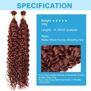 Cabelo Humano Gengibre Escuro Trança Ondulado de Água Cabelo Humano 100 g 45 cm Cabelo Humano Encaracolado para Tranças Boho Extensões de Cabelo Sem Trama 2 Tranças por Pacote Cabelo Humano Molhado e Ondulado Cor de Cabelo 350