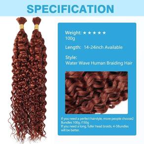 Cabelo Humano Gengibre Escuro Trançado Cabelo Humano Ondulado de Água Profunda 100 g 35 Polegadas Cor 350 Cabelo Humano Encaracolado para Tranças Boho Extensões de Cabelo Sem Trama 2 Tranças por Pacote Cabelo Humano Molhado e Ondulado