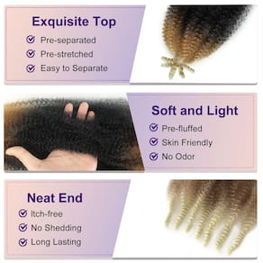 “ Sunsmilely Marley Twist Braiding Hair, cabelo afro Twist de 8 polegadas e 12 polegadas, 8 pacotes de cabelo enrolados para cabelos macios. Vantagens: Pré-afofado e pré-separado, muito macio, leve, sem cheiro, agradável à pele, com aparência natural, perfeito para qualquer penteado protetor. Informações: cabelo com torção afro elástica de 8 polegadas, 22 g/pacote, cabelo afro primavera de 12 polegadas, 30 g/pacote, 7 fios/pacote, 8 pacotes/lote. Normalmente, 6-8 pacotes podem encher uma cabeça. Vem com uma agulha de crochê e algumas miçangas. Cores disponíveis: 1B, 2#, 4#, 30#, 350#, T30, Tgray, 1B/30/27, 1B/27/613. Material: cabelo pré-afofado com torção de primavera, feito com fibra sintética retardante de chamas de baixa temperatura de alta qualidade, 100% feito à mão. Fácil de instalar: o cabelo elástico afro torcido é pré-afofado e pré-separado, fácil de instalar e pode ser trançado para vários penteados, conforme você quiser. Pode ser utilizado para fazer cabelos torcidos de primavera, cabelos com torção de paixão, cabelos envelhecidos com mechas de borboleta, enrolar cabelos para cabelos macios, tranças gigantes e quaisquer outros cabelos macios. Ocasiões: um toque excêntrico pré-fofo, adequado para uso diário, casamentos, festas, apresentações, viagens, dramatizações e sempre que você quiser mostrar seu charme. “ -?Material de cabelo Kinky Braiding?: cabelo trançado Marley Twist Sunsmilely de 8 polegadas feito de fibra sintética de baixa temperatura de alta qualidade, muito macio, com aparência natural, perfeito para qualquer penteado protetor. -?Informações sobre o cabelo trançado Marley Twist?: cabelo trançado crespo de 8 polegadas, 22 g/pacote, 7 fios/pacote, 8 pacotes/lote. Normalmente, 6-8 pacotes podem encher uma cabeça. Vem com uma agulha de crochê e algumas miçangas. Cores disponíveis: 1B, 2#, 4#, 30#, 350#, T30, Tgray, 1B/30/27, 1B/27/613. -?Springy Afro Twist Hair, fácil de instalar?: O cabelo trançado Kinky Twist é pré-afofado e pré-separado, fácil de instalar e pode ser trançado para vários penteados, conforme você quiser. Pode ser utilizado para fazer cabelos torcidos de primavera, cabelos com torção de paixão, cabelos envelhecidos com mechas de borboleta, enrolar cabelos para cabelos macios, tranças gigantes e quaisquer outros cabelos macios. -?Vantagens da trança Twist Hair?: O cabelo elástico afro torcido é pré-afofado e pré-separado, leve, inodoro, não agride a pele, é fácil de instalar e dura muito tempo. -?Kinky Twist Braiding Hair Occasions?: trança Twist Hair adequada para uso diário, casamentos, festas, apresentações, viagens, RPG e sempre que você quiser mostrar seu charme.