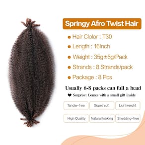 Cabelo trançado Marley torcido 40,6 cm elástico Afro Twist Hair 8 pacotes de cabelo torcido afro torcido cabelo sintético envoltório para cabelo Marley Locais macios (40,6 cm, T30) - 1. Especificações do cabelo torcido de mola: extensões de cabelo afro twist 40,6 cm 35±5g/pacote (8 pacotes/lote, 6 pacotes/lote, 3 pacotes/lote), geralmente 6-8 pacotes são necessários para uma cabeça inteira e podem ser utilizados para qualquer estilo de cabelo (belos estilos Spring & Bomb Twist). - 2. Material do cabelo torcido afro primavera: extensões de cabelo sintético afro torcidas feitas de fibra sintética de qualidade premium. O cabelo macio e leve, pré-separado e pré-afro torcido é cheio, elástico e fácil de instalar. Nosso cabelo elástico afro torcido está mais próximo do cabelo humano e mais natural de usar. - 3. Ocasiões e estilos adequados: o cabelo trançado Marley é perfeito para qualquer ocasião, como ternos para a vida diária, trabalho, escola, casamento, festa, viagem, show, desfile de moda, festa temática, encontros, bailes de máscaras em qualquer outra ocasião. O cabelo trançado Marley torcido é fácil de separar e usar com um crochê, pode ser facilmente utilizado para diferentes estilos de acordo com sua preferência, como estilos sem nós, borboletas, locs envelhecidos, coques, rabos de cavalo, mini torções, torções de paixão, pontos macios jumbo, tranças de caixa. - 4. Cor do cabelo de crochê torcido na primavera: as cores do cabelo torcido Kinky incluem preto (1B), preto natural (nº 2), marrom claro (30#), marrom avermelhado (350#). As cores da imagem e do produto real podem variar ligeiramente com base na resolução da tela. - 5. Serviço premium: estoque nos EUA, as extensões de cabelo Yufeihe marley twist podem ser entregues rapidamente. Se você encontrar algum problema durante o uso, sinta-se à vontade para entrar em contato conosco. Espero que você possa nos dar a oportunidade de melhorar. Forneceremos uma solução satisfatória dentro de 24 horas e no futuro.