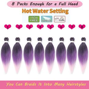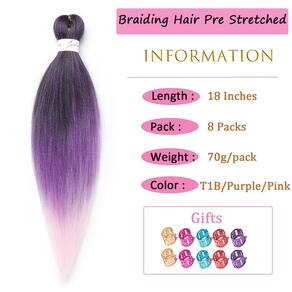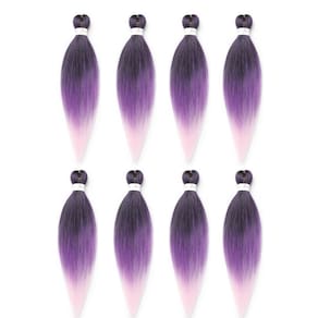 Cabelo trançado preto e roxo e rosa pré-esticado 45,7 cm, 8 pacotes Kanekalon pré-esticado, trançado, textura yaki, extensão de cabelo sintético, sem coceira, configuração de água quente (45,7 cm, T1B/roxo/rosa) - ?Material do cabelo?: O cabelo trançado pré-esticado é feito de fibra sintética resistente a chamas e retardante de chamas de alta qualidade. Aparência natural, textura yaki, muito leve, abundante e macia como cabelo humano. - ?Vantagens do cabelo?: Cabelo trançado Kanekalon atualizado pré-esticado, duradouro, super macio e amigo da pele, resistente ao suor, sem cheiro, sem alergia, sem coceira, não é fácil de dividir e difuso; lavável e reutilizável, fácil de trançar, perfeito para seu penteado protetor, confortável de usar por um longo tempo. - ?Fácil de instalar?: Cabelo trançado pré-esticado profissional, economiza muito mais tempo para trançar e instalar. Perfeito para personalizar penteados que você vai adorar. - ?Especificações do cabelo?: Você terá 8 pacotes de cabelo trançado de 45 cm pré-esticado e 10 anéis. Adequado para: uso diário, trabalho, escola, namoro, festa, noivado, casamento, cerimônia de formatura de viagem, meninas e crianças podem usar. Também é uma ótima opção de presente. - ?Configuração de água quente?: Você pode mudar o estilo de cabelo trançado pré-esticado muito facilmente mergulhando em água quente. Temperatura da água quente: 80 °C. Você pode fazer tranças de crochê ou cabelo de crochê torcido senegalês como quiser, pode ser utilizado como cabelo liso diretamente.