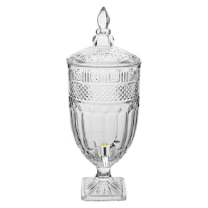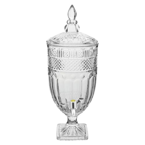 refresqueira com tampa, toda produzida em vidro e torneira em plástico metalizado é uma ótima opção para servir sucos, refrigerantes e águas aromatizadas dando um toque especial à sua reunião ou dia-a-dia. O modelo tem capacidade para até 4,5 litros da sua bebida favorita e vem numa linda caixa litografada, ótima também para presentear.