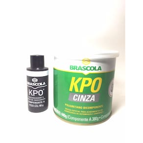 KPO Cinza - PU Bicomponente - Brascola - Acompanha Endurecedor - Massa 380g COMPONENTE A - Endurecedor 60g COMPONENTE B - Massa especial para acabamento em carrocerias de automóveis e caminhões Desenvolvido para vedação e fixação permanente de chapa metálica em carrocerias de automóveis e caminhões. Indicado para reforço de capôs, emborrachamento de assoalhos e na construção civil para colagem de soleiras. Pode ser aplicado com auxílio de espátulas, pincéis, aplicador específico ou através de um saco plástico resistente com um pequeno corte em uma das extremidades filetagem Dicas de uso: - As superfícies devem estar limpas e isentas de gordura, oxidação e tintas remanescentes. - Delimite as partes a serem vedadas com fita adesiva, evitando aplicar o produto em partes não desejadas, pois o KPO após a secagem só poderá ser retirado através de métodos mecânicos. - Retire o frasco do componente B, inserido na embalagem. - Despeje o conteúdo do componente B dentro da embalagem do componente A. - Com uma espátula, misture bem os dois componentes na própia lata até obter uma massa de cor uniforme. - Após a mistura, esperar por 5 minutos para que inicie a reação. - O produto deverá ser aplicado em até 40 minutos após a mistura. - Limpe as ferramentas com Cossolvente B-140 Brascola antes do endurecimento de Brascoved KPO. A lata contém o componente A. O frasco preto contém o componente B. O componente A é um produto químico não classificado como perigoso, de acordo com a ABNT NBR 14725-2 O componente B é um produto químico perigoso por conter diisocianato de difenilmetano Cura total: Após 24h Ean: 7896231700290