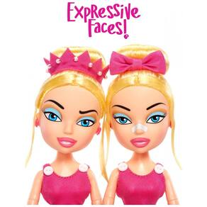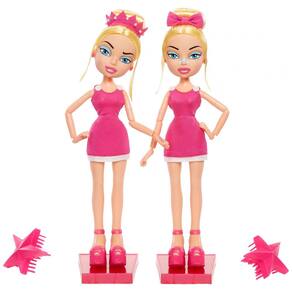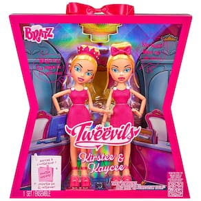 Atenção, meninas malvadas à vista! Conheça as Tweevils, Kirstee e Kaycee, a dupla de gêmeas seriamente malvadas que estão determinadas a arruinar os planos das Bratz, contanto que não arruínem a si mesmas primeiro. Vestidas de rosa e prontas para dominar o mundo da moda - pelo menos é o que elas pensam - essas garotas são sinônimo de problemas! Dezoito anos após a estreia da série de TV animada Bratz, as Tweevils finalmente ganham forma de boneca pela primeira vez! Desde os coques loiros chamativos até os conjuntos rosas cheios de estilo, essas bonecas Kirstee e Kaycee são totalmente fiéis às suas aparências na série de TV Bratz. Kirstee exibe um olhar de total julgamento, enquanto Kaycee encara em branco, com novas decorações faciais e esculturas de cabeça exatamente como na série. A embalagem em formato de laço apresenta vários pop-ups com acabamento em papel brilhante que transportam as Tweevils direto de volta para suas mesas na revista Your Thing, onde estagiam, e possui frases icônicas das Tweevils. Inclui 2 bonecas com vestidos, 1 coroa, 1 laço de cabelo, 2 escovas de cabelo, 2 suportes para bonecas e pôster.