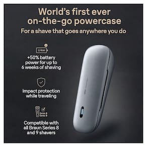 Conheça o braun powercase: o primeiro estojo carregador para barbeador totalmente portátil do mundo. O estojo oferece 50% mais autonomia da bateria, até 6 semanas de barbear sem fio a qualquer hora e em qualquer lugar. O powercase é feito de materiais premium duráveis e foi projetado para proteger seu barbeador contra impactos, arranhões, poeira e derramamentos. Totalmente compatível com os barbeadores elétricos masculinos braun series 9 pro, series 9 e series 8. Proteja seu barbear elétrico: o powercase é feito de materiais premium, projetado para proteger contra batidas, arranhões, derramamentos e danos causados por poeira. Até 90 minutos de barbear sem recarregar: o powercase oferece +50% de autonomia graças à sua potente bateria de íons de lítio integrada. Primeiro estojo de carregamento para barbear móvel do mundo: com até 6 semanas de barbear sem fio sem recarga. Compatível com barbeares série 8 e 9: o powercase é totalmente compatível com todos os barbeadores elétricos braun série 9 e série 8. Indicador led de bateria e escova de limpeza integrada. Contém 1 estojo dos eua