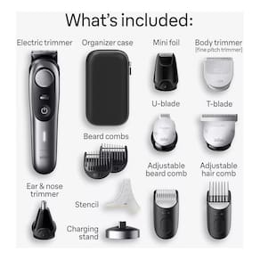 Descrição Kit de estilo tudo-em-um braun série 9 9440, aparador 13 em 1 para homens com aparador de barba, aparador corporal, máquina de cortar cabelo e muito mais, lâmina mais afiada da braun, 40 configurações de comprimento. Marca: braun Nome do modelo: série 9 9440 Descrição deste aparelho Este kit de estilo curado 13 em 1 atende a todas as suas necessidades: aparar, detalhar, contornar, desbotar, pentear, barbear com precisão e aparar orelhas e nariz. Versatilidade ilimitada, precisão profissional: o prowheel possui 40 configurações de comprimento em etapas de 0,02 polegadas e prolock para travar sua seleção sem erros, além de pentes para barba e cabelo para comprimentos de 0,5 mm a 20 mm. Fácil, rápido e suave: o problade é eficiente em cada passagem, mesmo em áreas difíceis, para excelentes acabamentos e limpeza confortável em todo o corpo Penteado sem esforço: resultados incríveis em qualquer tipo, comprimento ou espessura de cabelo com a inovadora tecnologia autosense da braun. Construído para durar: este aparador masculino possui uma poderosa bateria de íons de lítio com autonomia de 100 minutos sem fio, lâminas afiadas para toda a vida, suporte para carregamento e um estojo premium para armazenamento do vendedor: 2 meses Marca: Não Informado