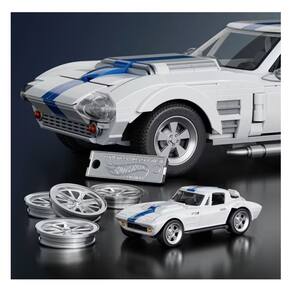 Chegou o modelo montável do Corvette Grand Sport, em escala 1:16, da Mattel Brick Shop. Este kit cheio de detalhes inclui peças extras para personalização, calotas metálicas, folha de adesivos, placa exclusiva e um carrinho metálico para colecionar. Colecione todos os modelos da linha Elite Series.