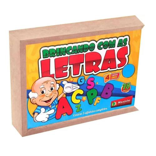 Caixa de mdf que contém 3 alfabetos completos também em mdf .