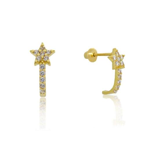 Além disso, eles sempre terão espaço garantido em nossas joias. O brinco possui um formato de estrela-cadente e possui uma cravação de 10 zircônias que dão um brilho digno de uma estrela. além do brilho do ouro 18k que garante o charme e um brilho inigualável.