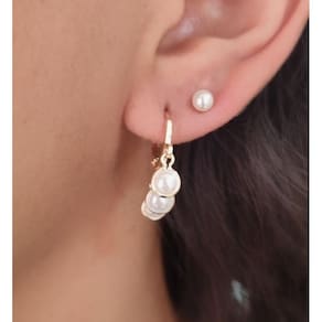 Brinco Argola 3 Pérolas Banhado A Ouro 18K