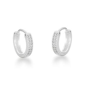 Brinco Argola Click duas fileiras Zirconias Prata 925 1,37cm -