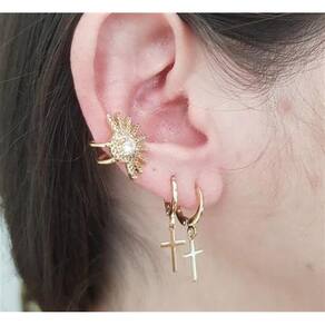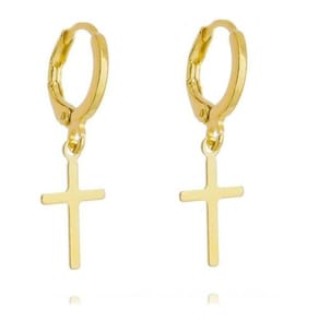 Produzido com material folheado de ótima qualidade, esse brinco garante durabilidade e resistência. Além disso, ele conta com uma cruz pendurada na argola, o que traz um toque de religiosidade e simbolismo para a peça.