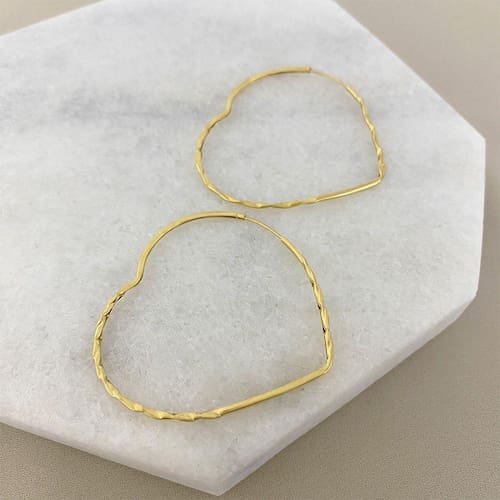 Brinco Argola Coração com Detalhes Torcidos Banhado a Ouro