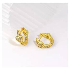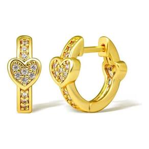 Brinco Argola Coração Pedra Zircônia 10 Mm Frente E Verso - Dourado