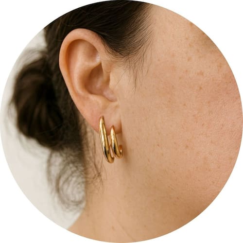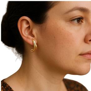 Brinco em argola dourada dupla, design moderno e elegante. Perfeito para dar um toque sofisticado ao seu visual em qualquer ocasião.