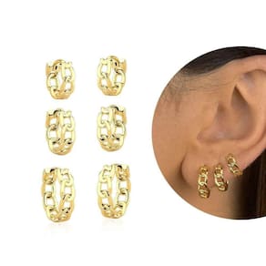01 Par Brinco Argola G Corrente Dourada Semijoia Lizzy Fatin