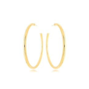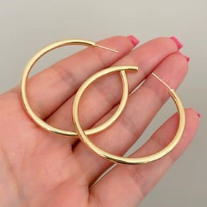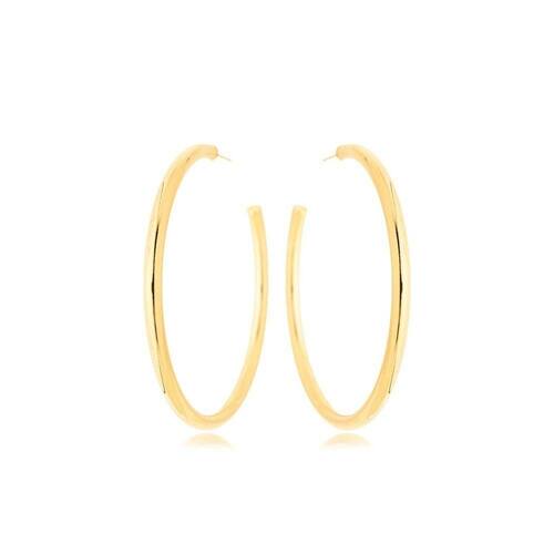 Brinco Argola Lisa Tarraxa Banhada a Ouro 18k 4,9cm - Brinco Argola Lisa Tarraxa Banhada a Ouro 18k