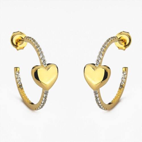 Brinco Argola Média Folheado a Ouro com Coração Banhada a Ouro 18k -