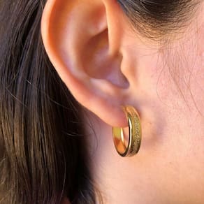 O Brinco Argola Trabalhado faz parte dos clássicos acessórios folheados em ouro 18k que temos disponível na loja.