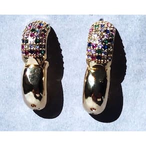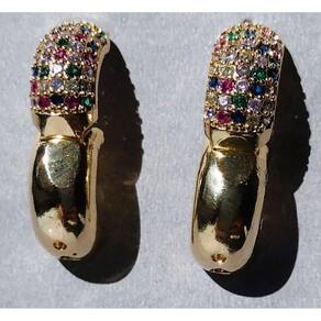 01 Par de Brincos Argola Folheados a Ouro com Micrôzirconias Coloridas.