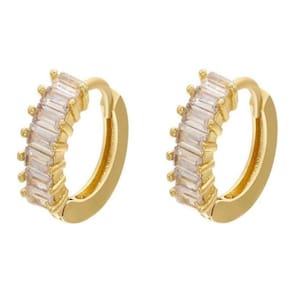 Argola folheada a ouro 18k, com pedra de zirconia. Antialérgico. 6 mm de diâmetro interno. Valor para 2 peças PAR Marca: De Castro Joias Ean: 7892142549362