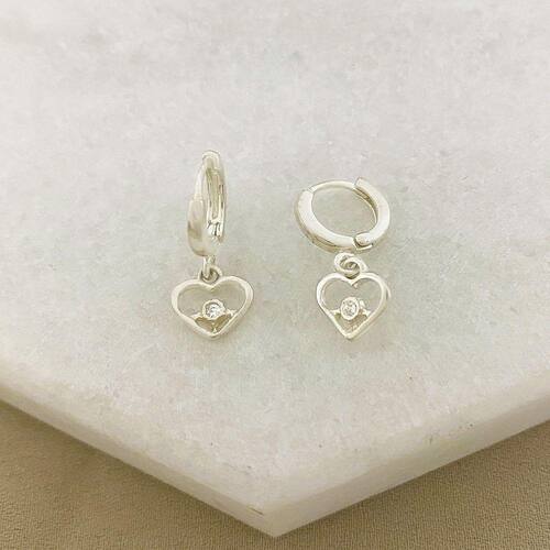 Brinco Argolinha com Pingente de Coração e Ponto de Luz de Zircônia em Prata 925