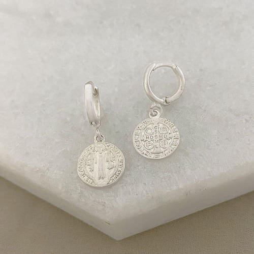Brinco Argolinha com Pingente Medalha de São Bento em Prata 925