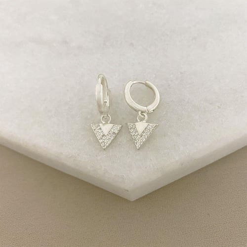 Brinco Argolinha com Pingente Triângulo Cravejado com Zircônia em Prata 925