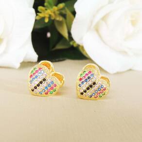 Esse brinco é composto por uma argolinha e um coração com zircônias coloridas. A tendência e a aceitação do acessório com argola pelas mulheres fizeram com que surgisse diversos estilos e combinações de Brincos com Argolas, e trazemos mais um modelo encantador para fazer parte da sua coleção.