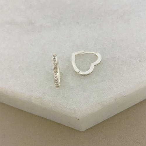 Brinco Argolinha Coração Cravejado com Zircônia em Prata 925