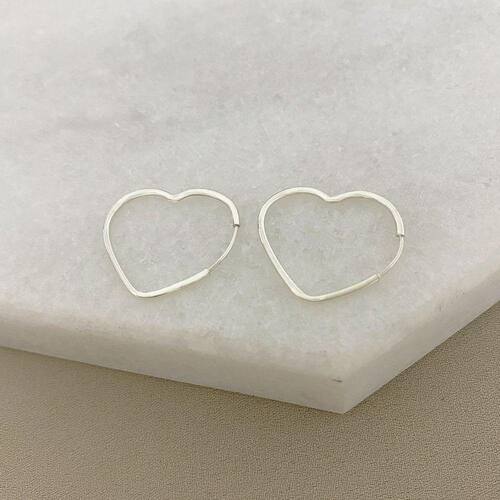 Brinco Argolinha Coração M em Prata 925