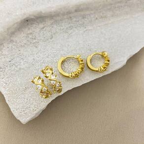 Brinco Argolinha Coroa com Zircônia Banhado a Ouro