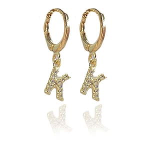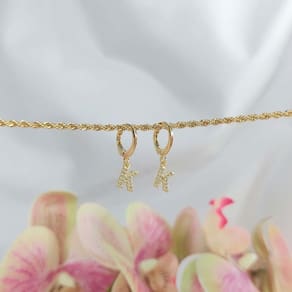 Esse brinco é composto por uma argolinha articulada seguida de uma letra toda trabalhada em zircônias, um encanto de acessório que tras um charme único assim como você