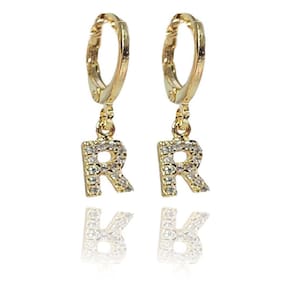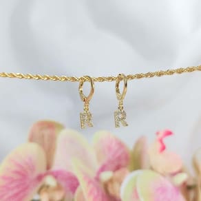 Esse brinco é composto por uma argolinha articulada seguida de uma letra toda trabalhada em zircônias, um encanto de acessório que tras um charme único assim como você