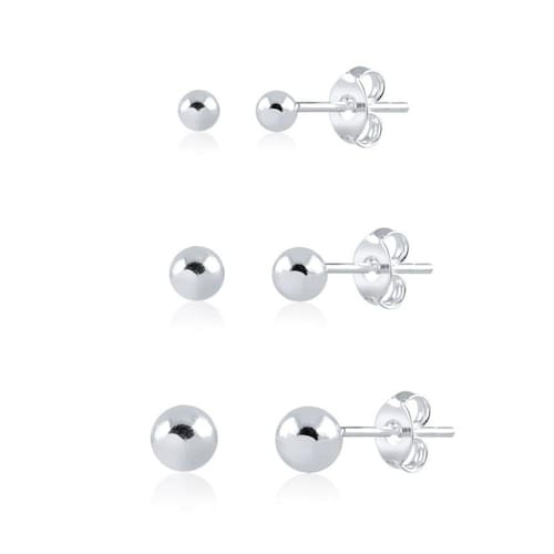 Confira as características desse Brinco Bola De Prata 925 Kit Com 3 Pares Pra 3 Furos Tamanhos do Brincos 3mm, 4mm, 5mmPeso Total: 1.4g