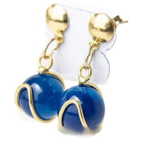 Brinco Bolinha na Cesta Pedra Agata Azul Pino Dourado, lapidação esférica totalmente artesanal com polimento em Maquina a montagem é feita em na cesta com banho flash douradoNOME DA(S) PEDRA(S): Agata AzulCOR DA(S) PEDRA(S): Azul Foto IlustrativaCORTE DA(S) PEDRA(S): BolinhaCLARIDADE DA(S) PEDRA(S): Vitrio OpacoMEDIDA DA(S) PEDRA(S): 26 x 10 (Milimetros).PESO TOTAL DA JÓIA: 5 GramasMETAL: Cesta Niquelado com banho flash DouradoORIGEM: Montagem ( Curvelo MG) Foto Ilustrativa