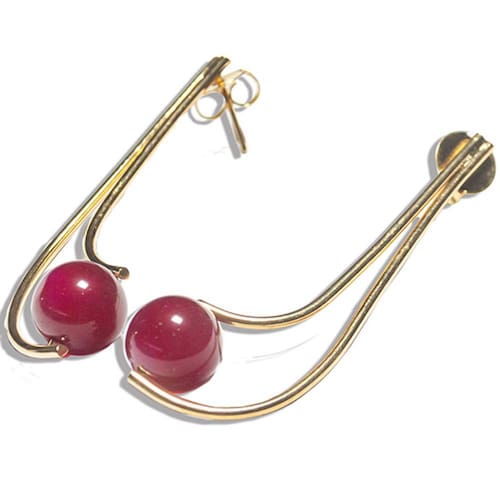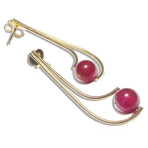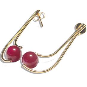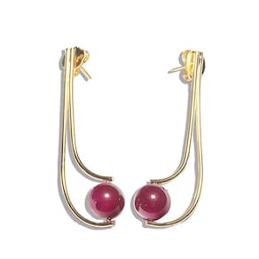 Brinco Boomerang Pedra Agata Rosa, lapidação Bolinha totalmente artesanal. A montagem é feita com uma montagem modelo Boomerang e banho flash dourado + Bolinha de Pedra.