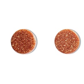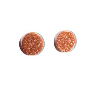 Nome da Pedra: Pedra do Sol (pedra sintética reconstituída) Cor: Marrom com cintilação dourada (imagem ilustrativa) Formato da Pedra: Disco Textura e Brilho: Vitrio opaco com efeitos cintilantes Tamanho da Pedra: 9 mm de diâmetro Peso Total: Aproximadamente 5 quilates por par Metal: Niquelado em dourado Origem da Montagem: Produção artesanal em Curvelo, Minas Gerais Destaques: Pedra do Sol: Pedra sintética reconstituída com efeito cintilante único. Lapidação artesanal: Formato disco que destaca o brilho e a cor da pedra. Acabamento dourado: Toque de sofisticação que valoriza o visual. Versatilidade: Ideal para diversas ocasiões, combinando com diferentes estilos.