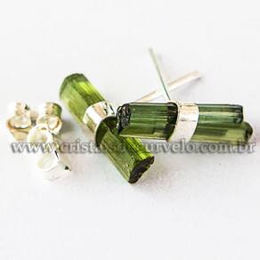 Brinco Canudo Turmalina verde Bruto Envolto Prata 950. Pedra Canudo Turmalina Verde Natural "não" é pedra de laboratório como esta cheio o mercado por ai, a montagem Prata 950 com Tarraxa para segurar a pedra que é totalmente Natural.