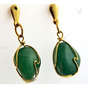 Brinco Quartzo Verde, Cesto amarradinho totalmente artesanal. A montagem é feita banho flash dourado