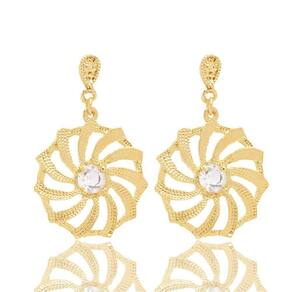 Brinco Com Pedra Strass Detalhado Folheado A Ouro 18k